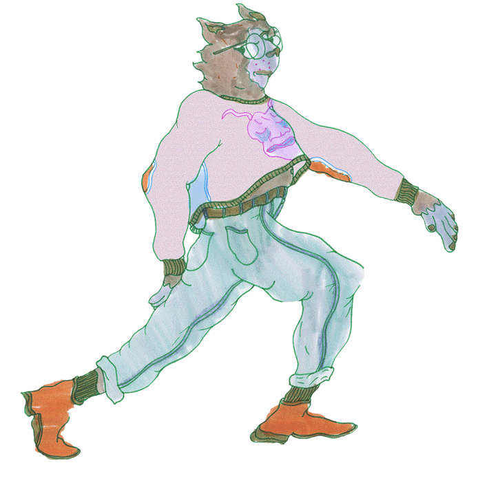 I think many experimental animators celebrate rejecting Animation Law. My favorite animation law to break is animating “bad” anatomy. I’m so curious about the regulation that is put in animated bodies. How much gravity they should experience, what their relationship is with entertainment, why they are brought into the animated space and how their bodies should move. Lately, I’ve been interested in treating the loop as a real timeline as if the character is actually stuck in that repetitive state. I use anthro characters to explore the experience of the cartoon body for a few reasons. There’s some neutrality to them. Their identities are blurry and they can function as vague anatomical forms.